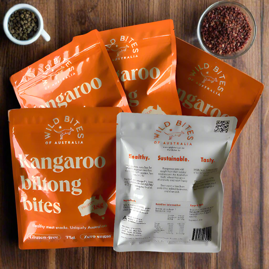 FREE delivery with your pack of 5 kangaroo biltong 75g pouches